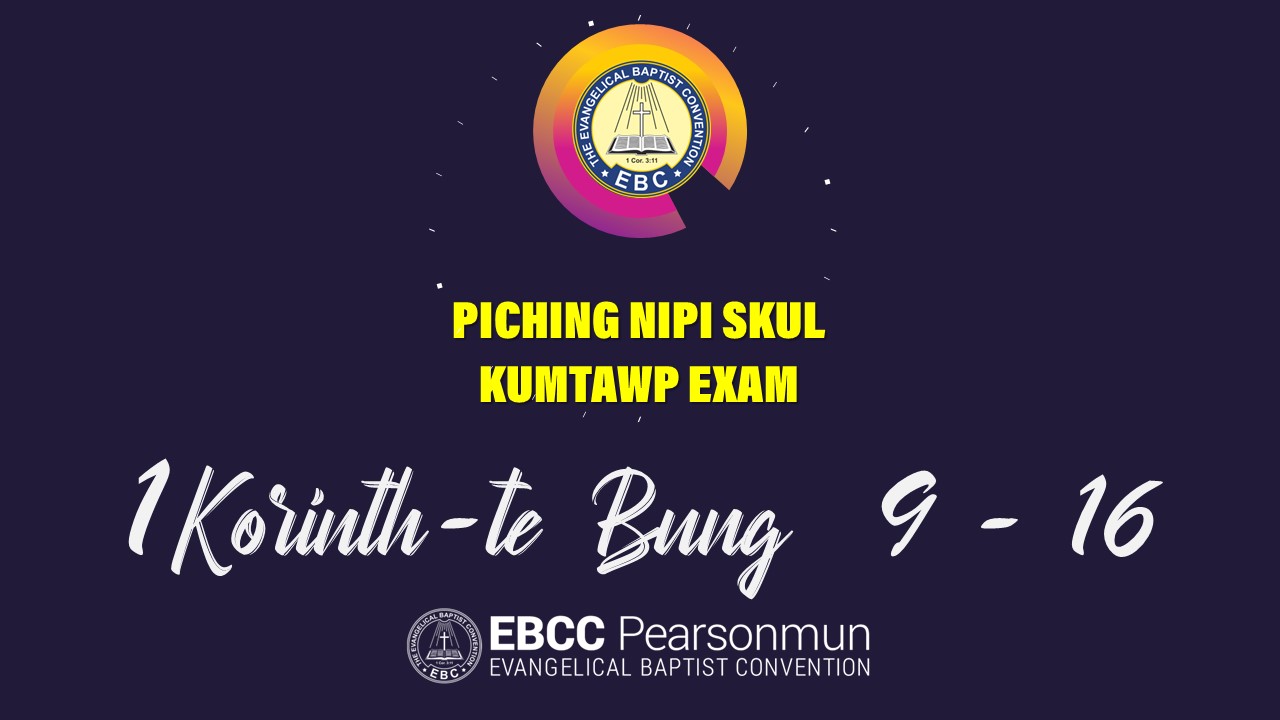 Tu a hong tung ding Nisim 06-11-2022 (Pathianni) in Piching Nipi Skul in Kumtawp Exam Biakinn ah neih hiding hi. Tukum Piching Nipi Skul 1 Korinth-te Bung 9-16 sung hi ding hi. Tua hun ah ei Local Saptuam a pat a tam theilam exam ding in iki chial ahi.